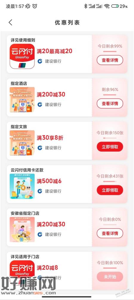 Ysf生活,建设银行里面点进去下拉500-6还款卷,还有400多张,加果