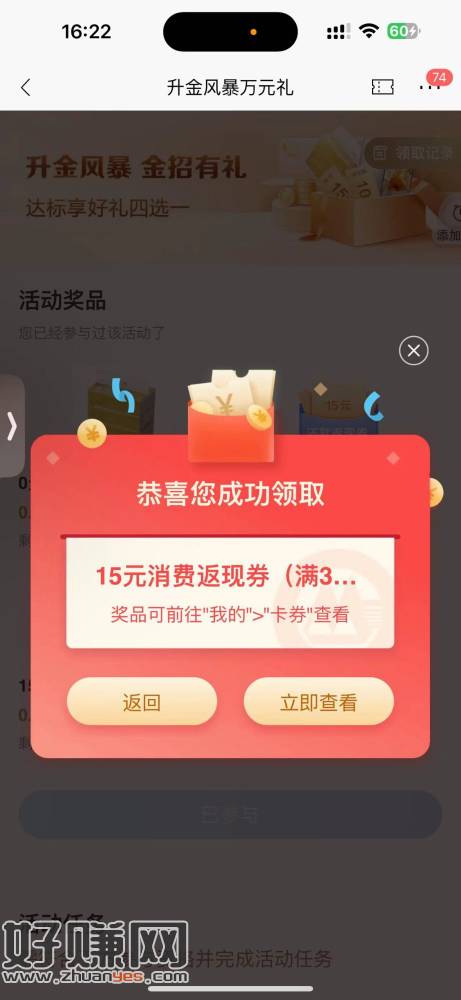 招行(15润自己去)-搜 升金风暴2023 万元礼- 有30-15的卷直接去拿 符合的去 可以直接刷任务