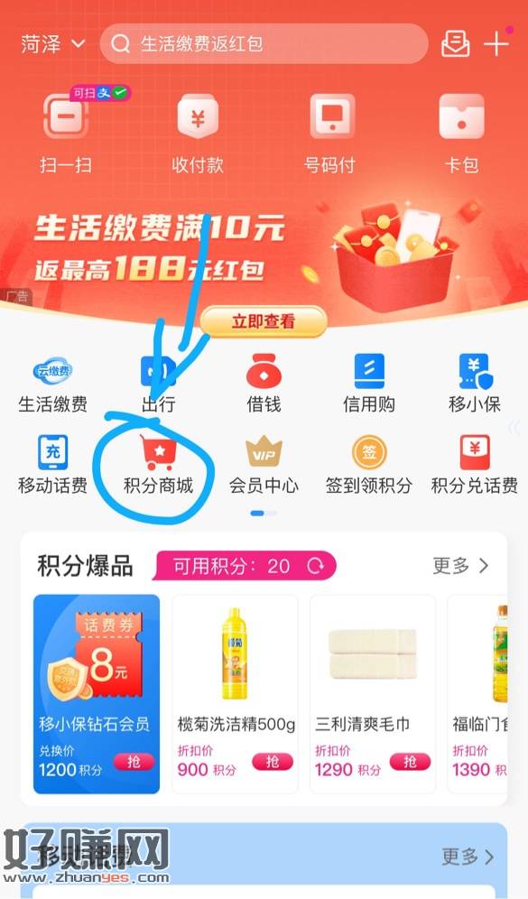 2、下载个和包。 3、上面两个链接领完,然后支付宝搜:积分兑好礼,领800积分