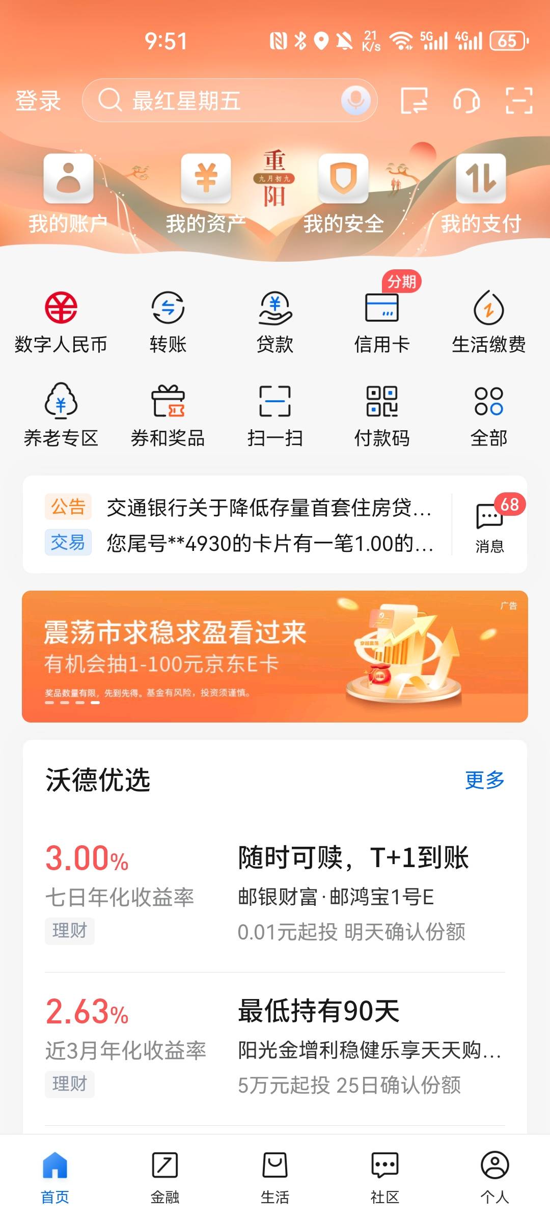 交行app横幅震荡市求稳求盈抽e卡