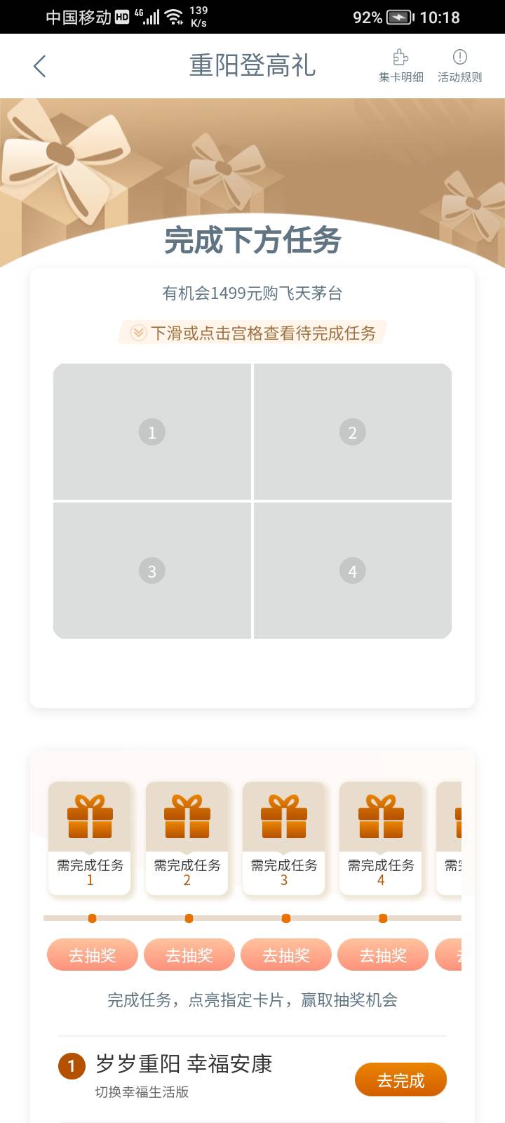 行任务中心重阳登高礼,完成指定任务抽奖