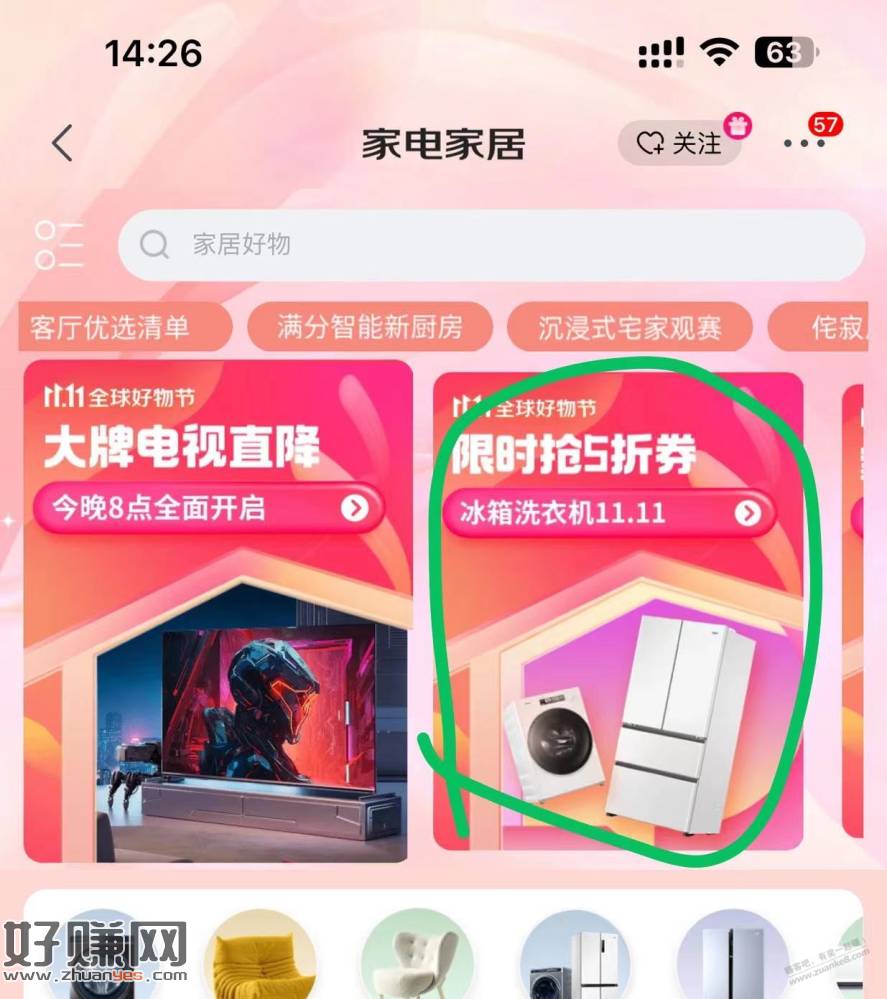 京东搜 家装大促 首页滑动 有家电五折券 3000张 蹲一下