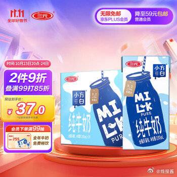 https://coupon.m.jd.com/coupons/s ...... amp;roleId=125824308三元 小方白 200mL*24,plus2件60 https://u.jd.com/0bWJqmH