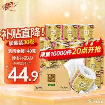44.9,清风 金装4层 140克30卷