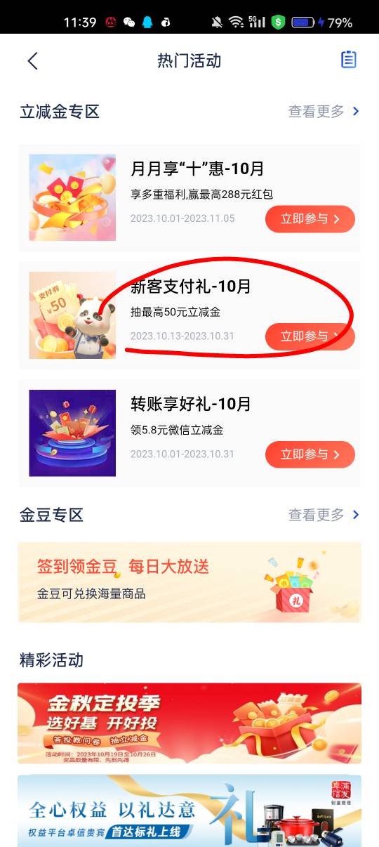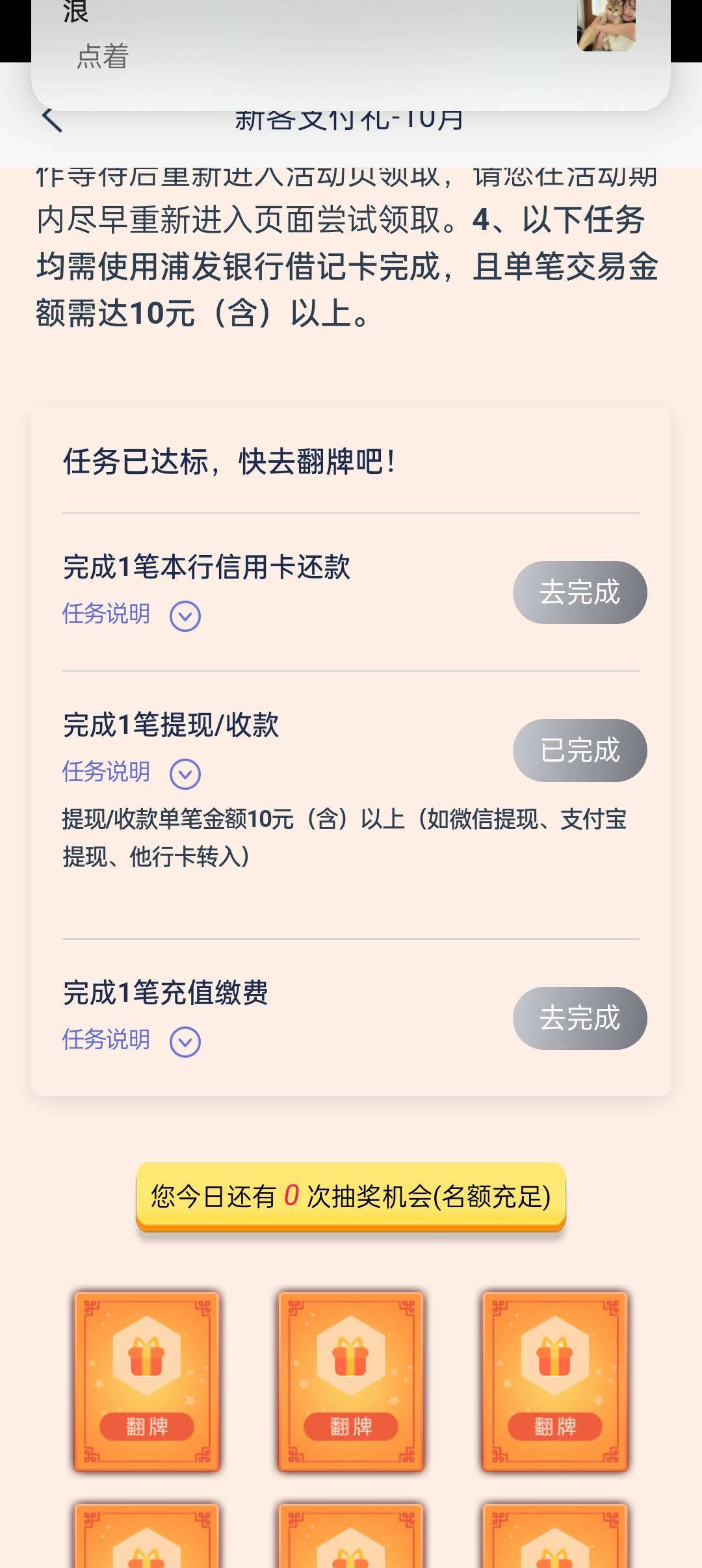 浦发yh 新客10月 他行转11抽