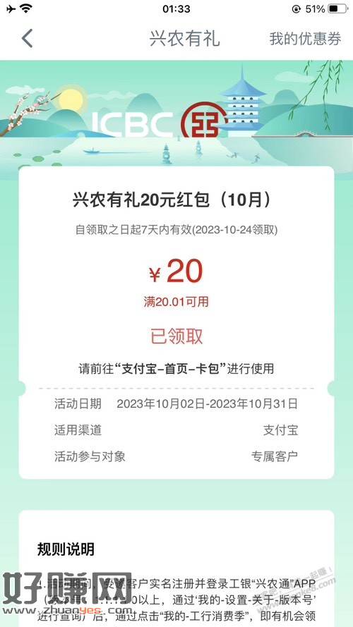 不知道是不是限地区,兴农通 我的 工行消费季 有个号出了个20 月初没看到,刚捡漏