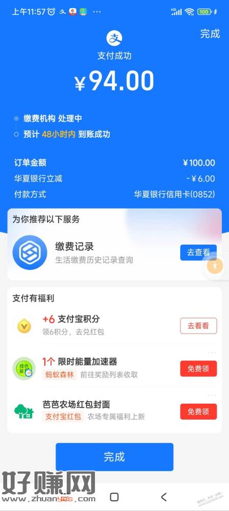 支付宝生活缴费,我交的水费,华夏xyk100-6