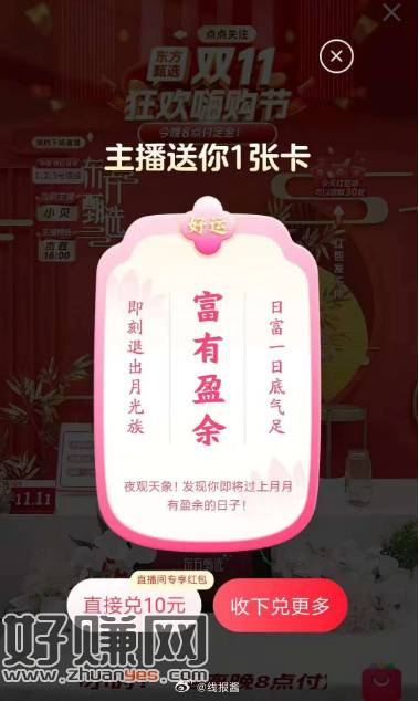 点淘东方甄选直播间,进去停留一下,弹卡
