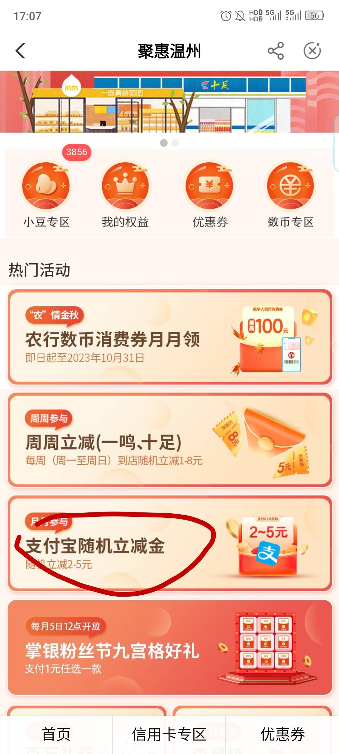 农行浙江温州192000城市专区-聚惠温州-支付宝随机立减金