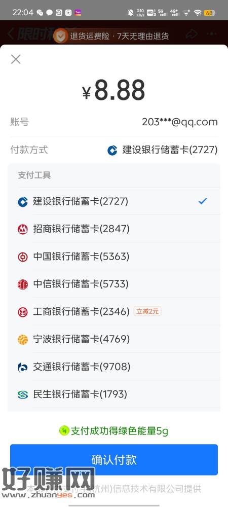 zfb支付工行1.2类卡立减2,闲鱼链接可t