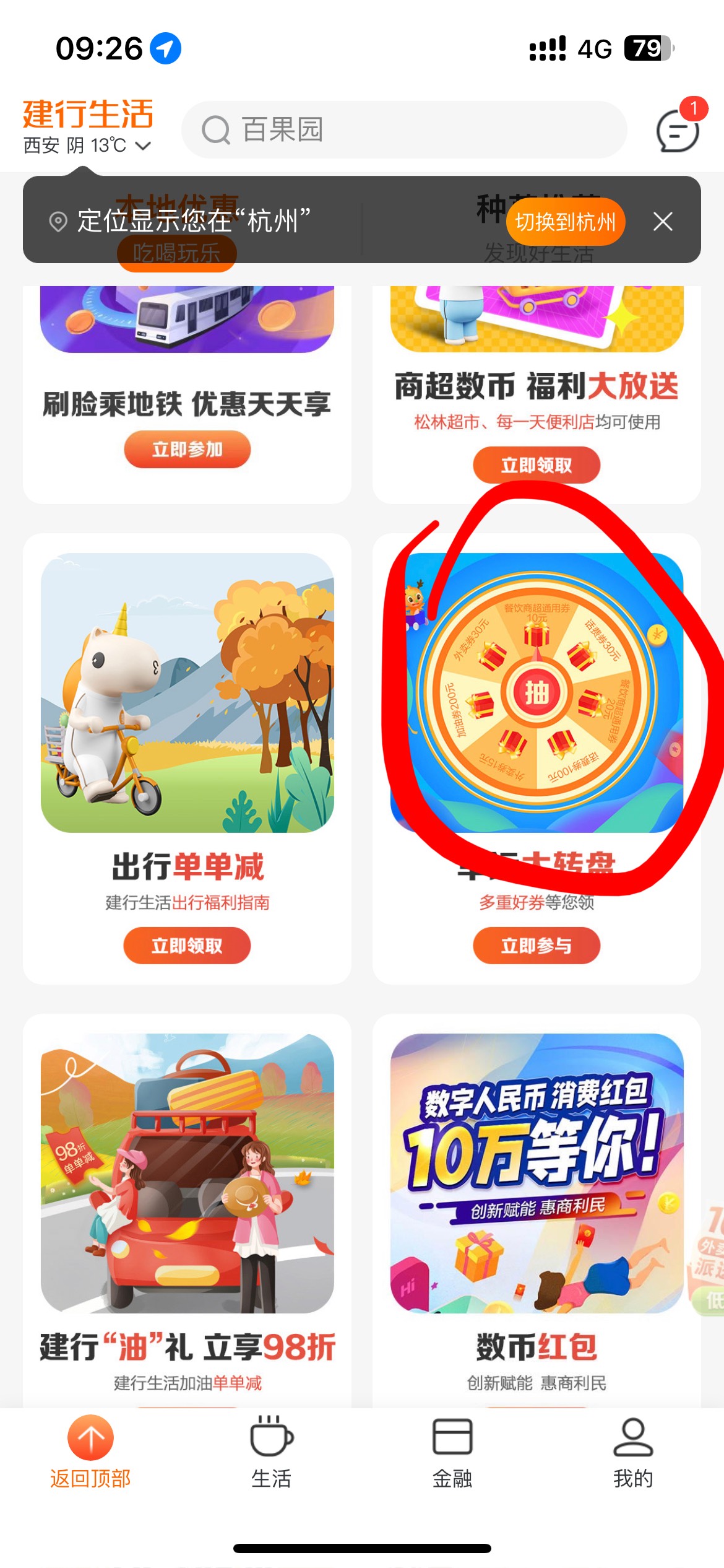 建行生活左上角改西安 下拉幸运抽奖 好运g去吧