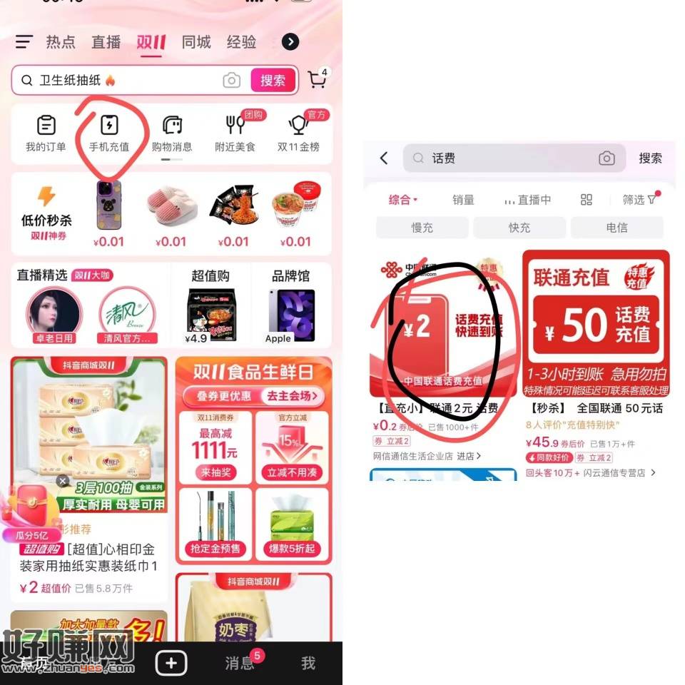 dy商城-手机充值-进去弹窗领2
