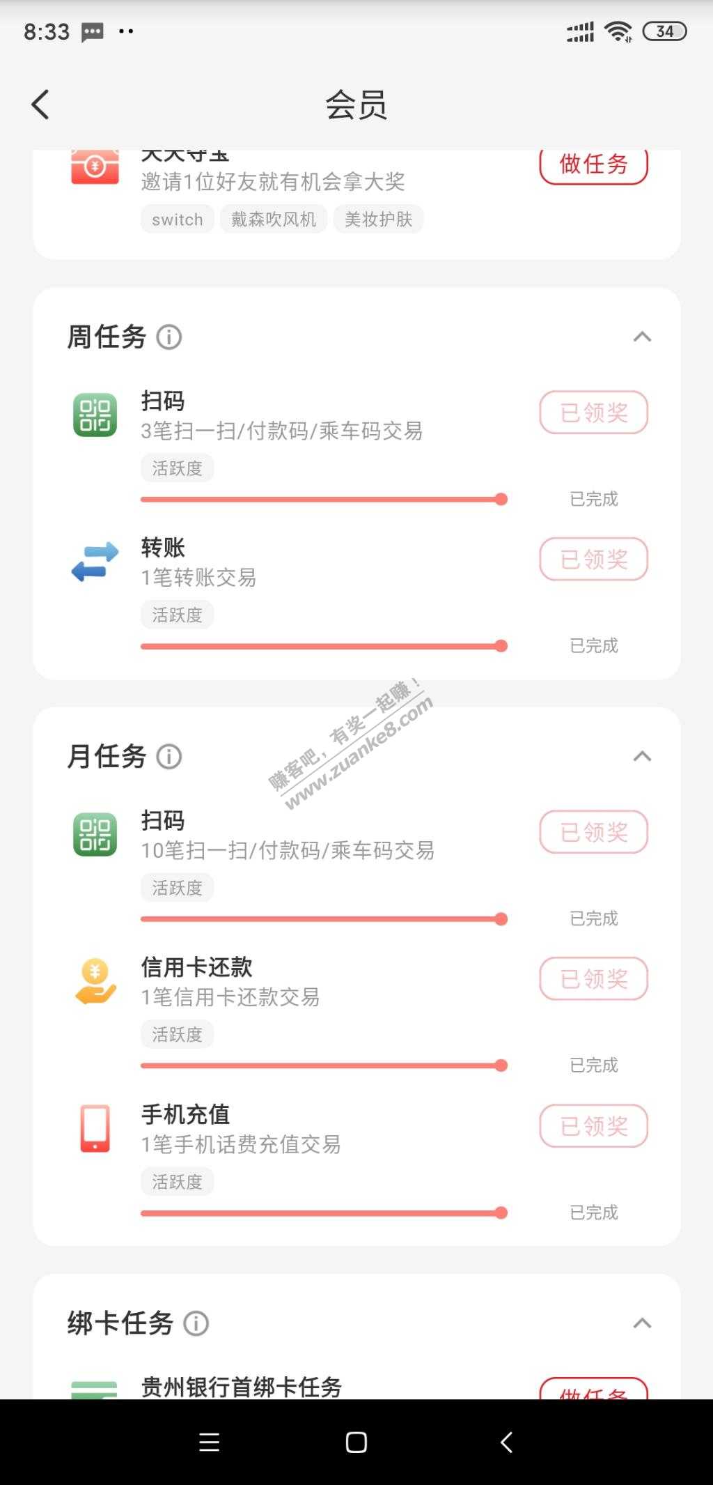 我的,会员,周任务2元红包,月任务6元,一个月十四元到手