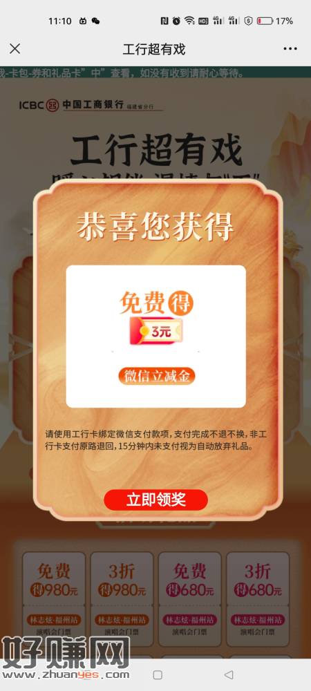 福建工行,关注工行福建公众号,回复幸福,抽立减金或门票