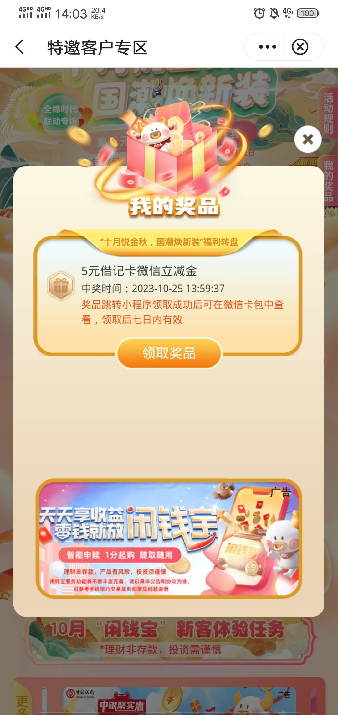 中行深圳特邀专区,十月悦金秋国潮换新装转盘抽奖