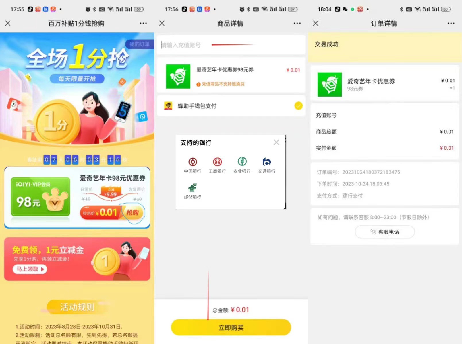 0.01去申请爱奇艺年卡卷 注意看有这5大行的去 vx直达: