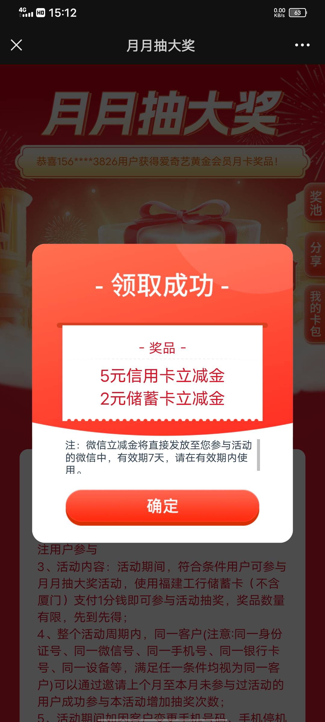 今日首发 工行福建公众号左下角进去,月月抽奖,限制福建卡
