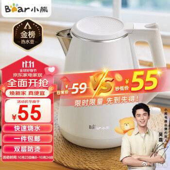 29.9,小熊 电水壶1.5L,304不锈钢内胆双层防烫