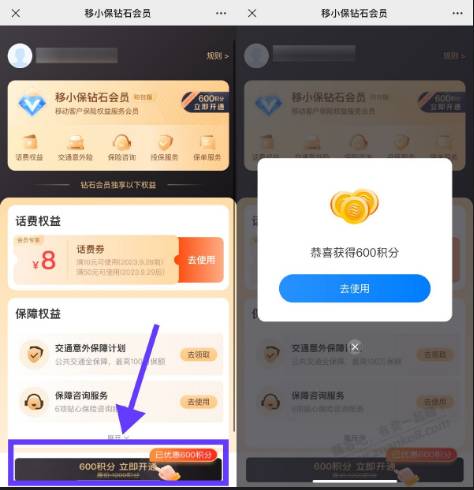 登陆后页面有显示优惠开通就可以参与,点一下自动弹出600积分,不用真的去开通!