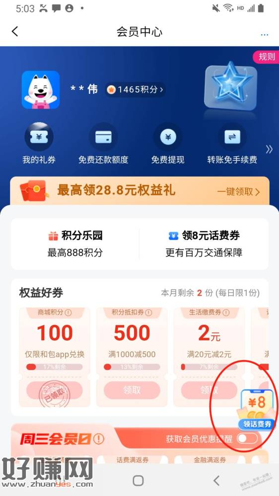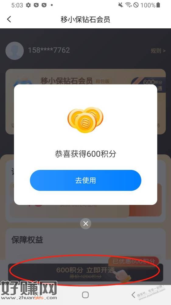 会员中心右下角8元话费点进去,下面显示600开通直接点一下到账600,显示1200的不要点,没有