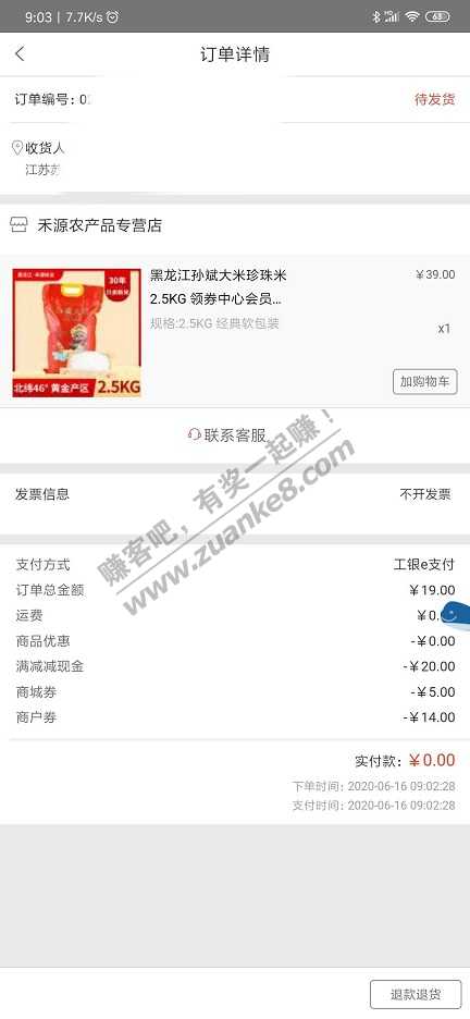 昨天没上融E购,今天一个0元单