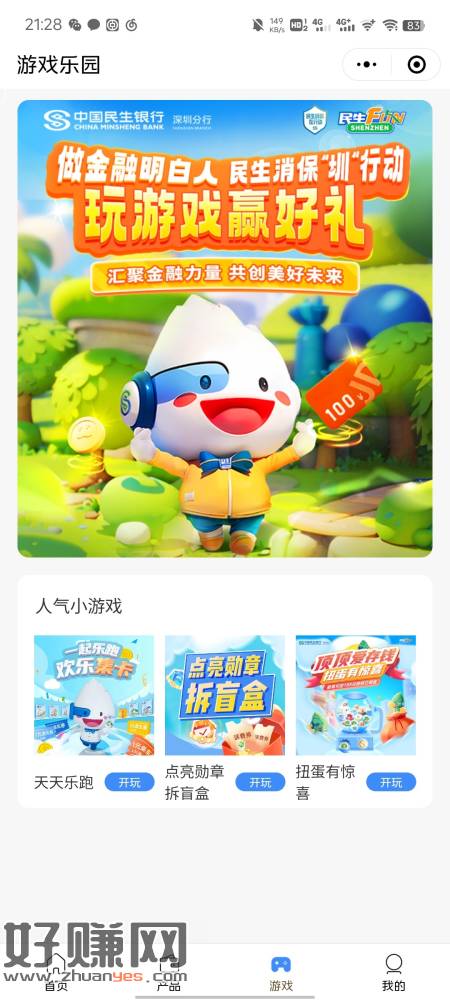 小程序,民生fun-游戏-天天乐跑,步数9w+,可以领2元一