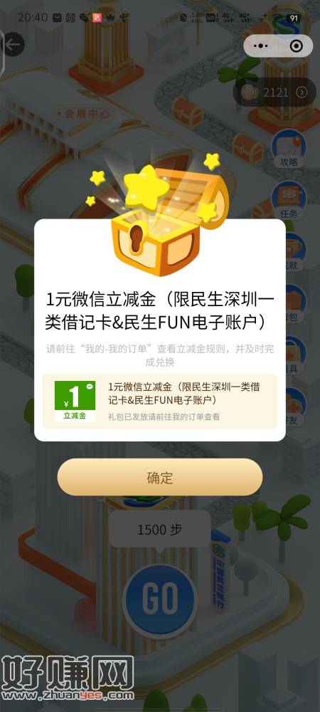 小程序,民生fun-游戏-天天乐跑,步数9w+,可以领2元一类卡立减,1元电子账户立减