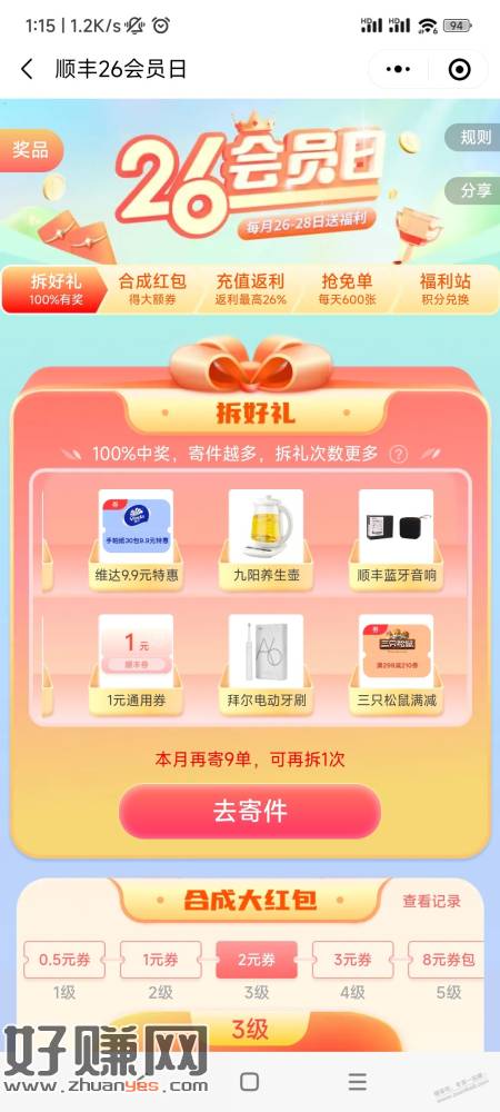 顺丰会员日,抽中实物