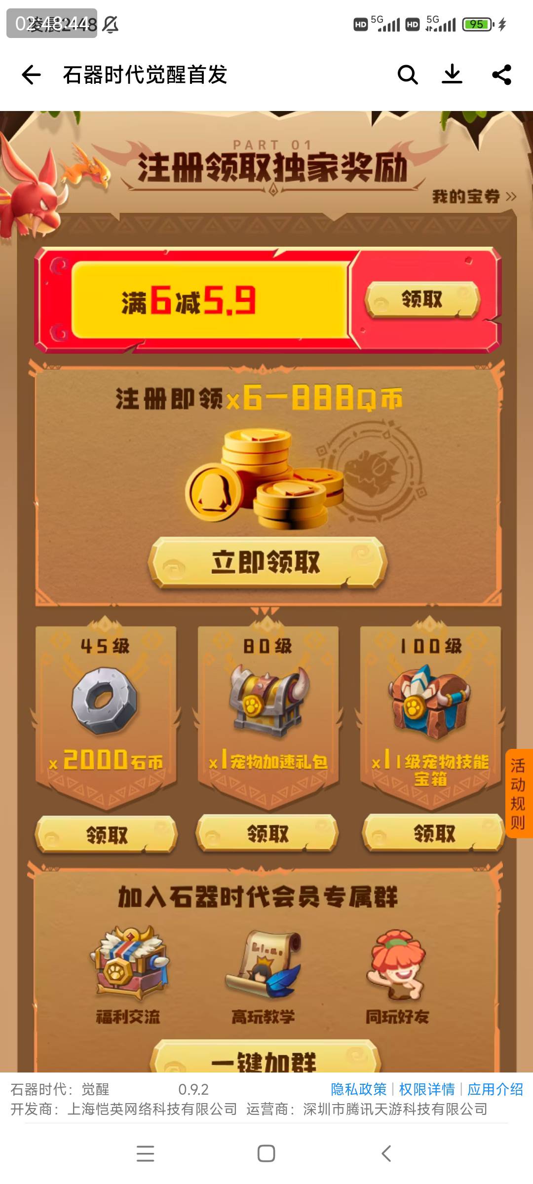石器时代今日首发qq端心悦和应用宝渠道活动,v端待补
