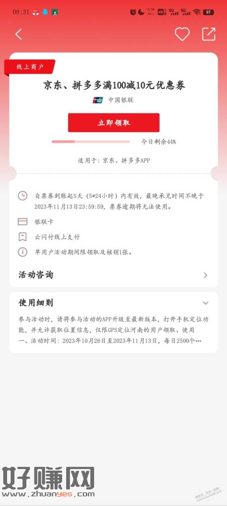 河南云闪付搜索京东9.6元大毛