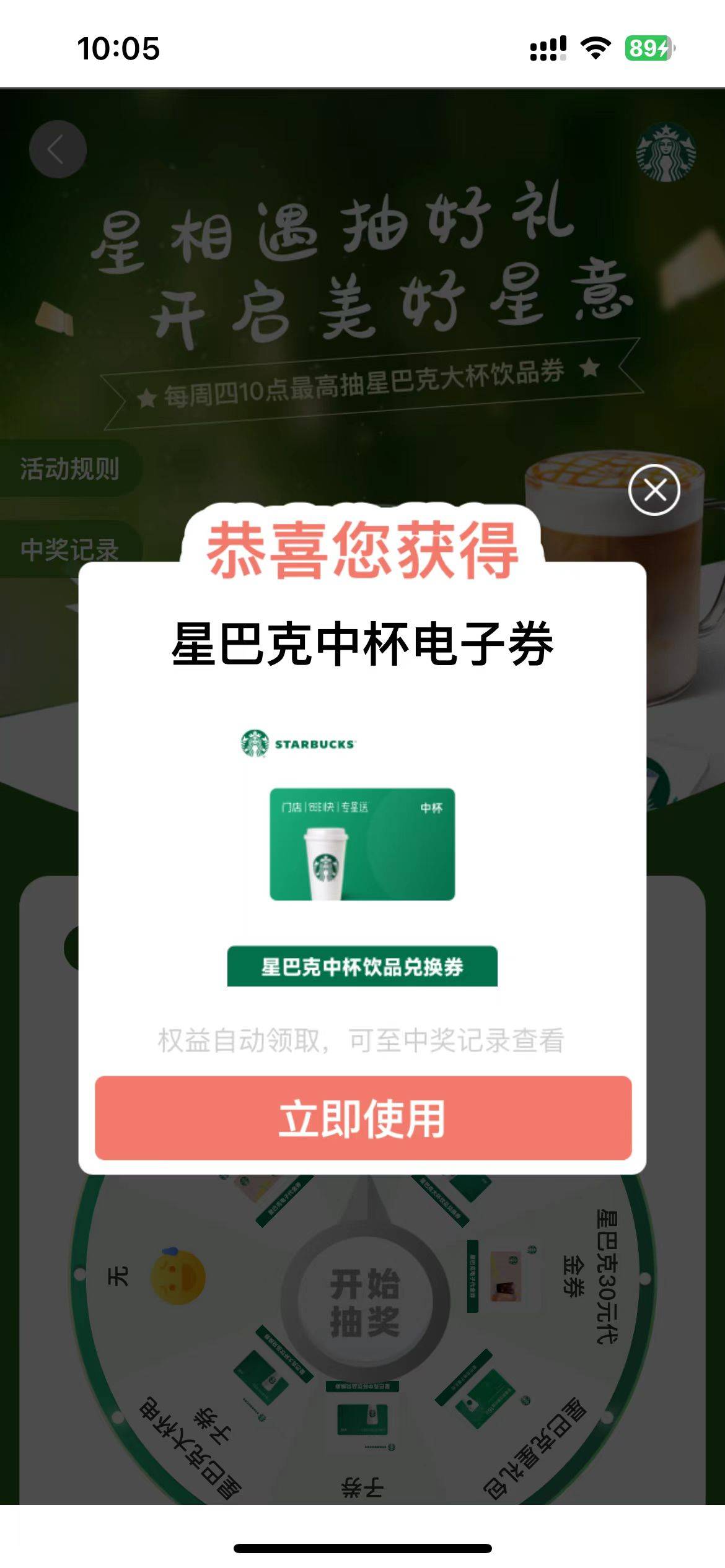 工行周四10点搜星巴克抽奖