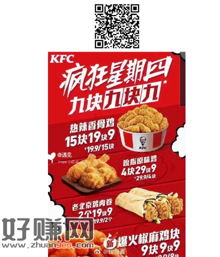 今日肯德基疯狂星期四,扫码点餐再便宜几毛钱