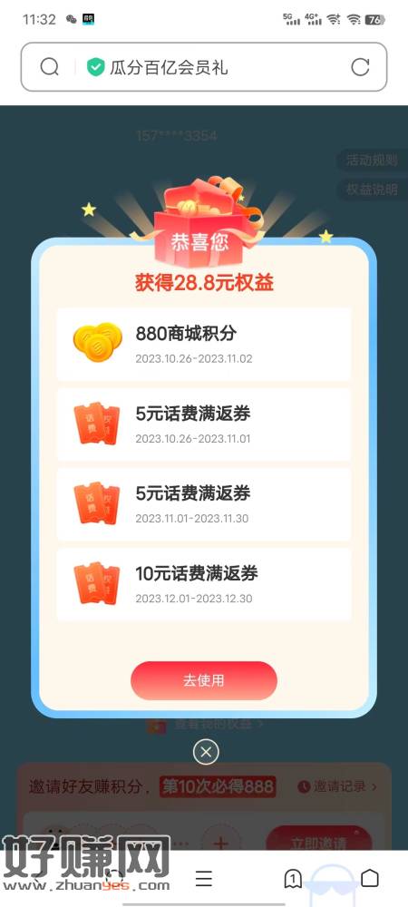 和包首页下滑最低下“瓜分千万会员礼”活动,没去的去领一下,现在都是大包,另外速去拉人,上限10个人,我这边拉满将近50润