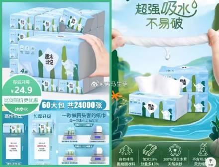无限回购!百分百原生木浆制造24.9=原木日记母婴级抽纸24包24.9=原木日记母婴级抽纸24包24.9=原木日记母婴级抽纸24包进口原生100%木浆 3层加大加厚柔软细腻亲肤 0荧光增白添加剂~https://m.tb.cn/h.5SgUSyy