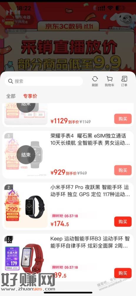 京东3c直播间,小米手环5折,还有很多其他五折。