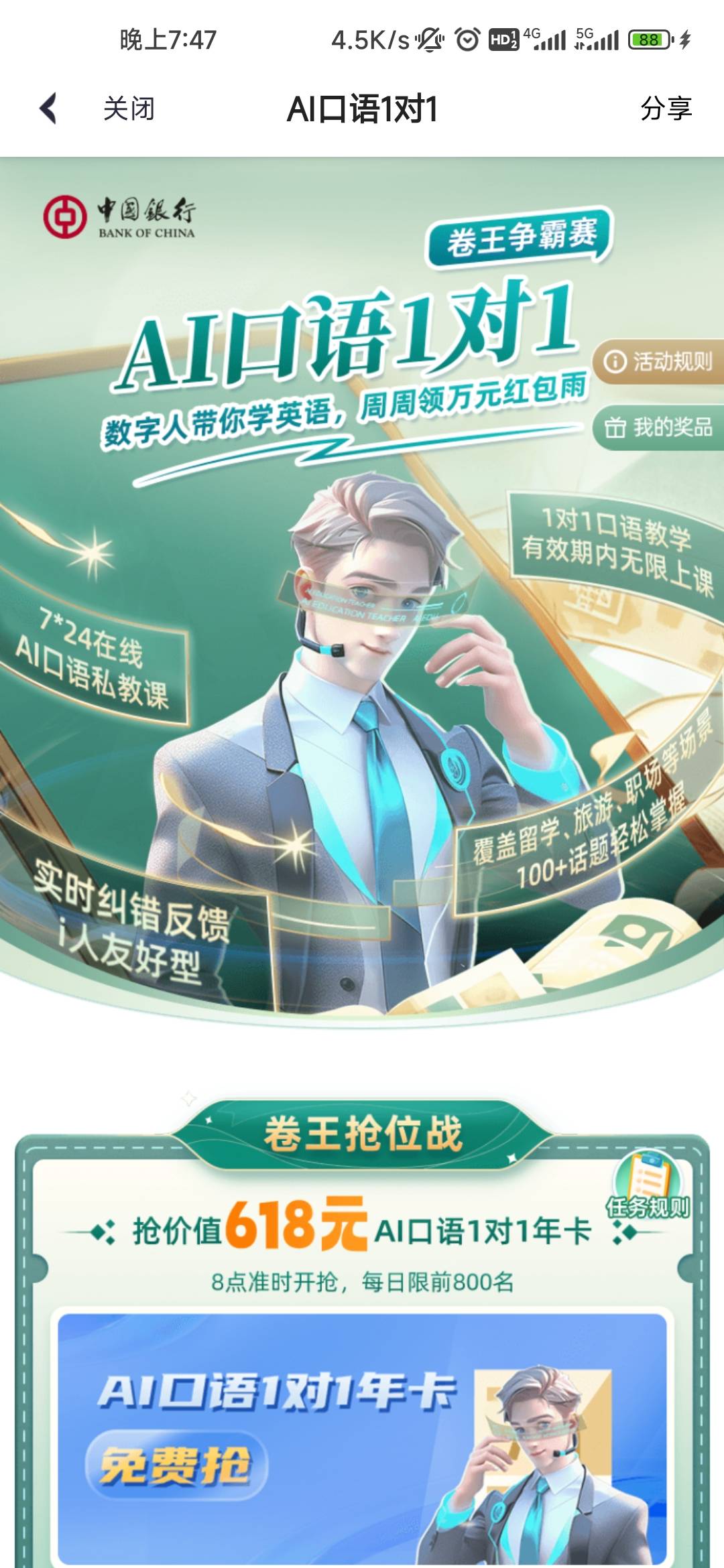 首发-中银跨境go留学频道ai口语一对一免费申请实物