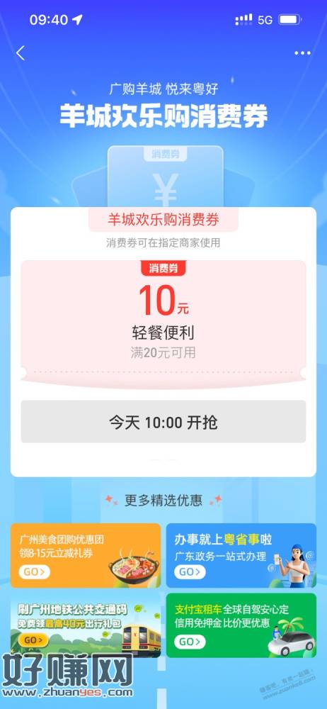 支付宝-羊城欢乐购-轻餐便利20-10劵全广州领