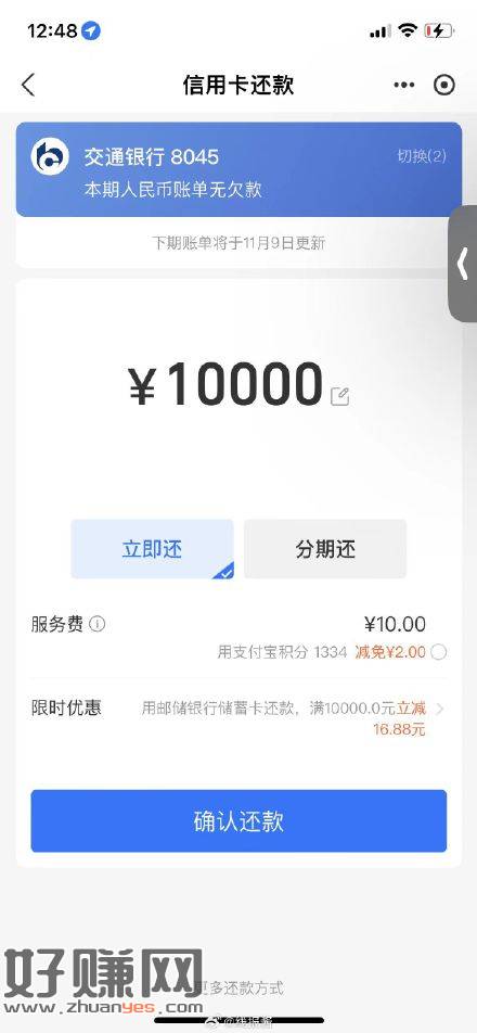 支付宝还信用卡,邮储卡有满减