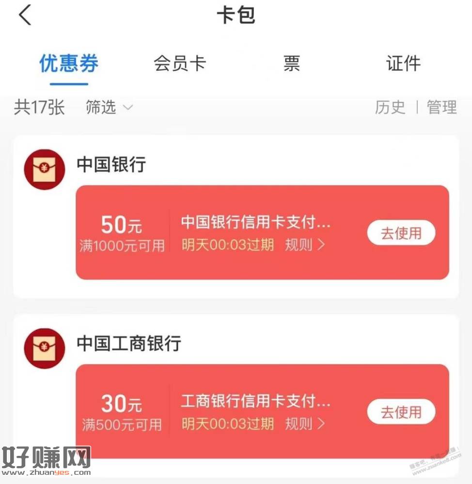 支付宝搜银行卡双11抽奖中了1000-50润30