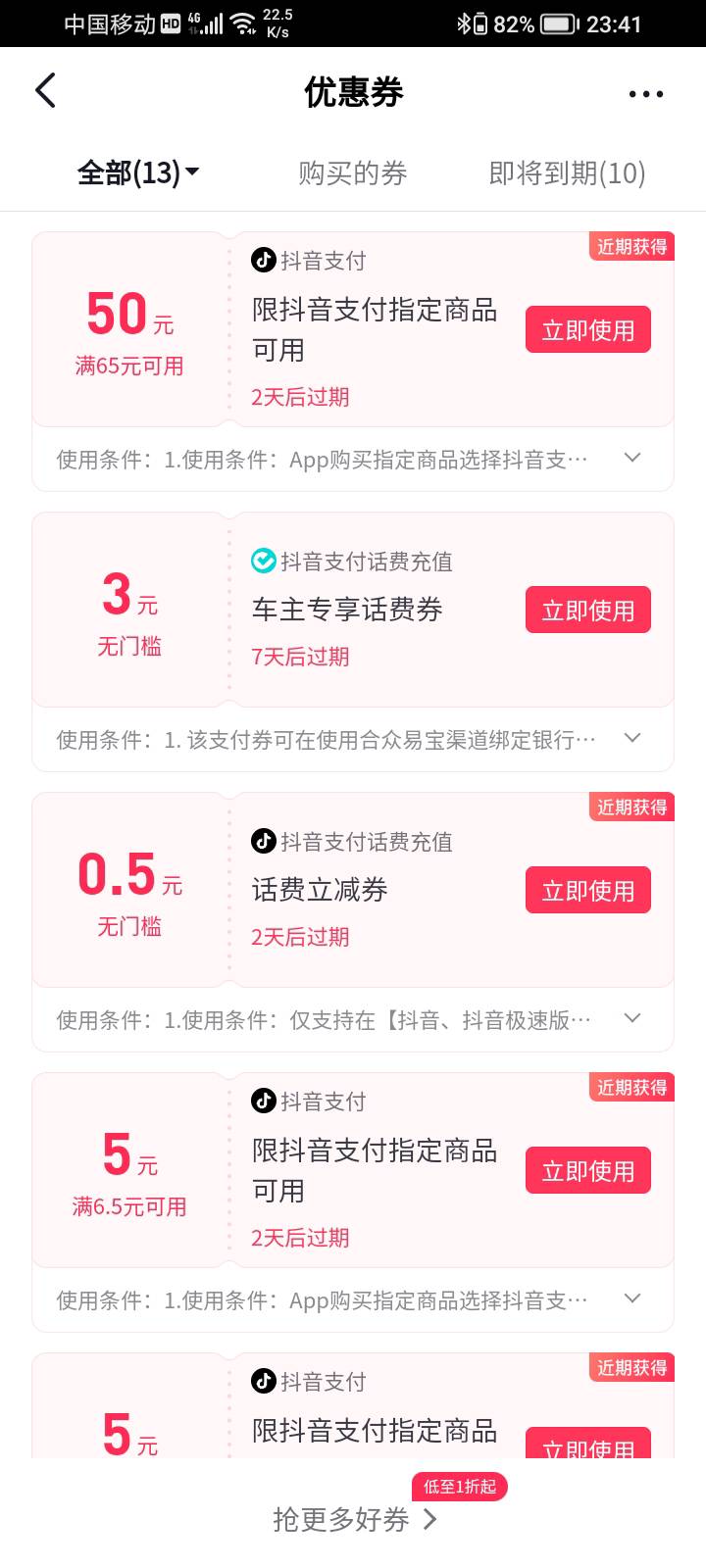 抖音钱包-手机充值-横幅填写车牌领话费券