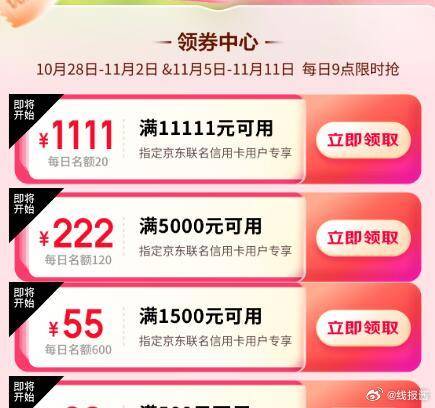 狗东联名信用卡,10月28日-11月2日,11月5日-11月11日,9点蹲支付券