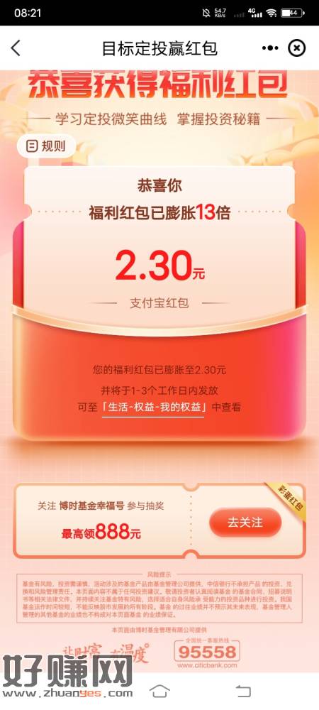 中信银行app,搜博时基金,横幅,做定投任务膨胀,人人2.3