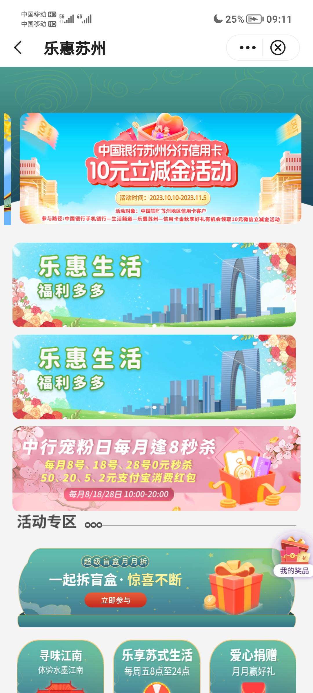 中行苏州-乐惠苏州-苏州信 用卡10元立减金活动