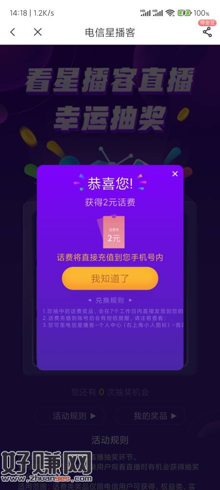 中国电信app下滑预约拉满抽话费,刚中。