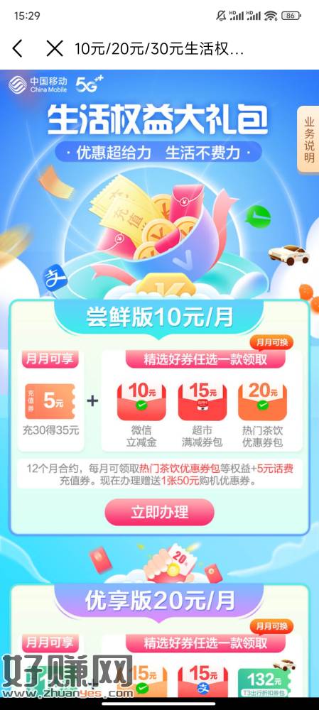 话费多的去,广西移动生活权益包最低10立减,合约12个月,自