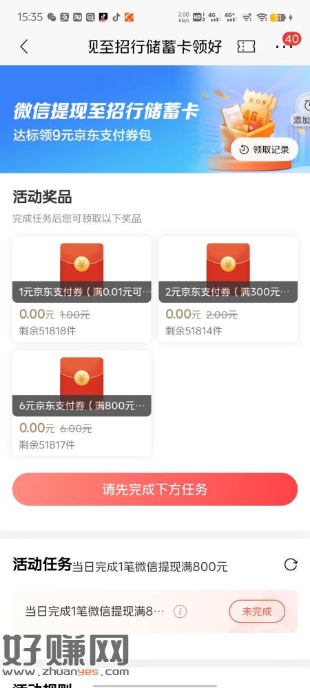 微信提现招行储蓄卡,满800有个无门槛支付券1元,不嫌毛小就