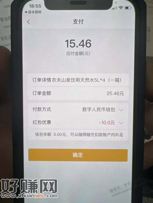 1.vx扫码领下边的农行数字10元,2.送水到府app领首页万圣节大抽奖(基本都5元),3.下单买水用农业银行付款随机立减8元左右,付款跳转选择数字人民币钱包再减10元,叠加万圣节5元,做到3叠加,每月一次。