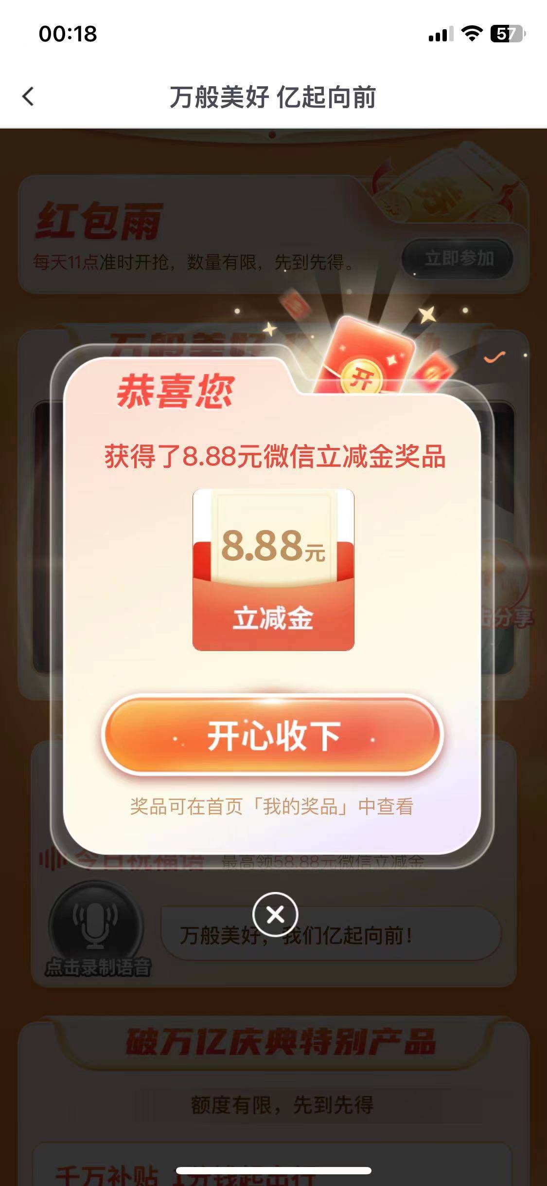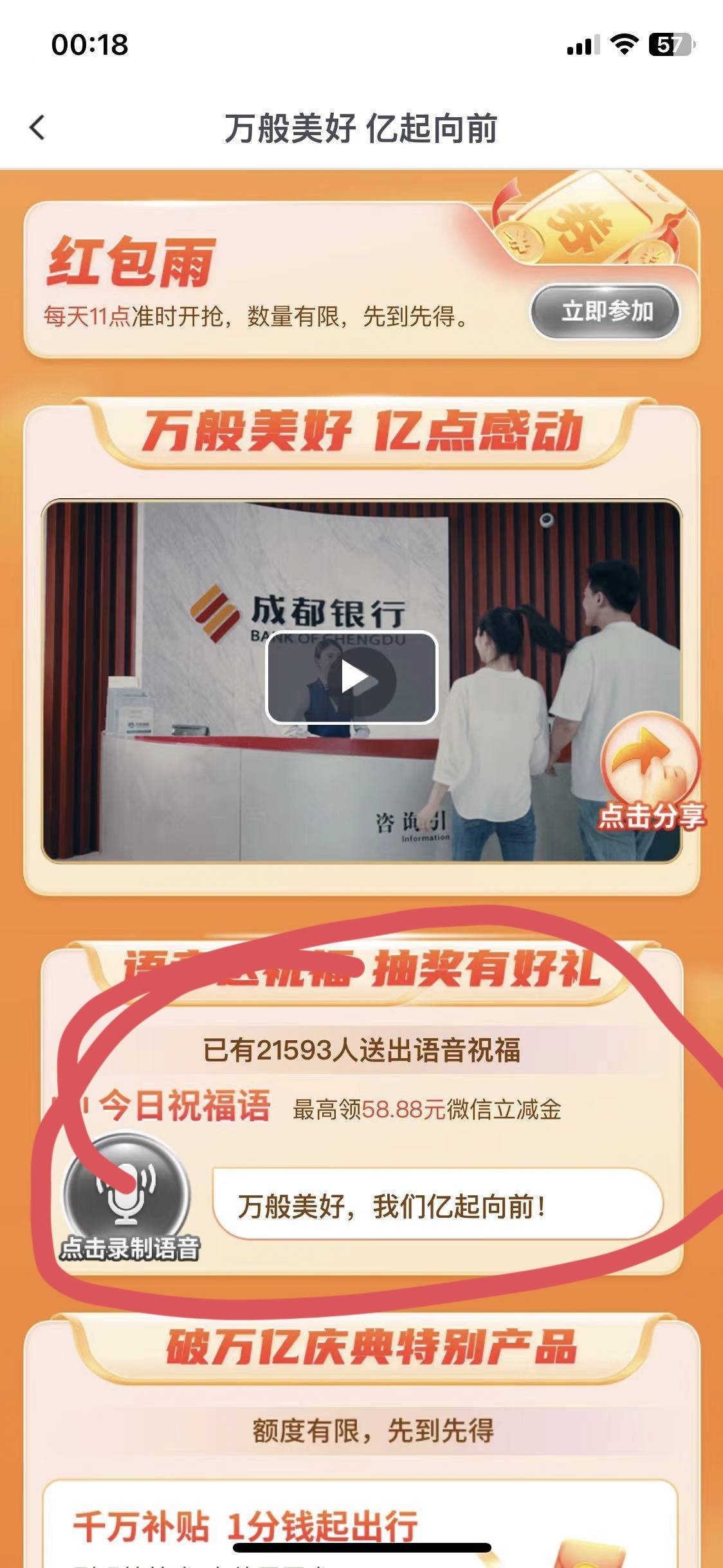 今日首发,成都银行都有吧,首页万般美好进入,录音提交,抽奖最高58.8,好孕的老哥冲,我8.88