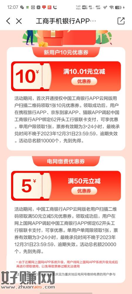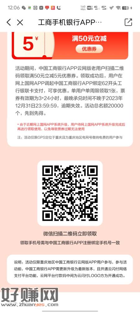 VX扫,工行云网新用户10元立减(使用规则看图),限重庆地区