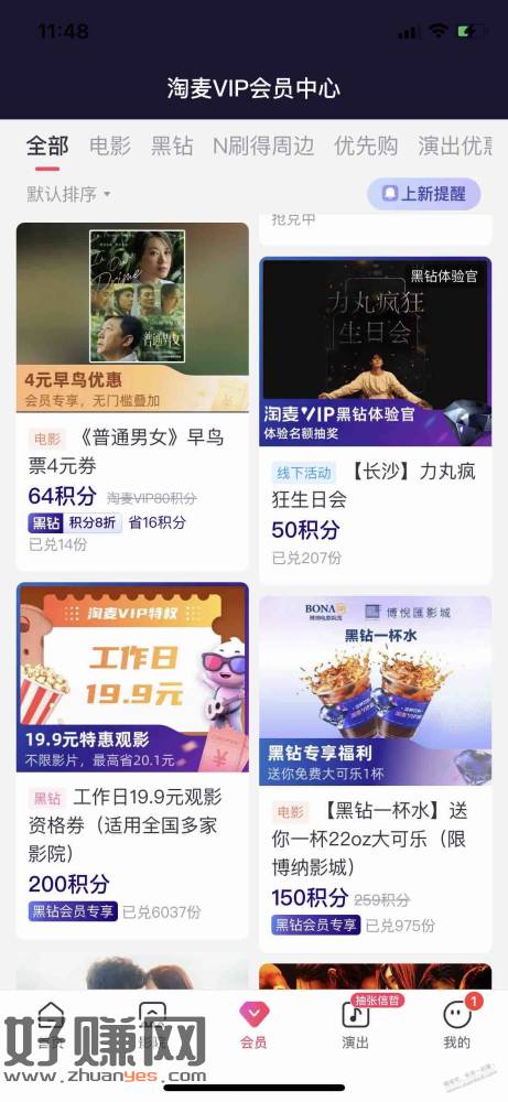 淘票票黑砖电影兑换券19.9,200积分兑换!40以内19.9又来啦!超过补差价
